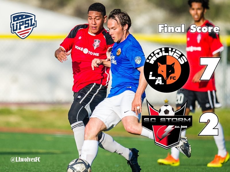 Wolves FC (3-0-0 overall) tallied five times in the final 20 minutes in a 7-2 victory over Santa Clarita Storm in a Pro Premier Division Western Conference game on Sunday night at Glendale Sports Complex.