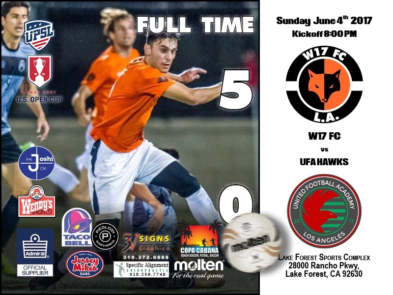 L.A. W17 FC (9-2-1 overall) has won seven consecutive games after a 5-0 victory on Sunday night over United Football Academy Los Angeles in a United Premier Soccer League (UPSL) Championship Division Western Conference game at Lake Forest Sports Complex.