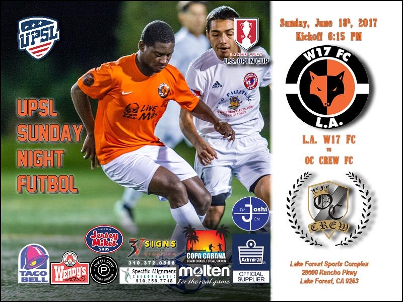 Riding a season-high eight-game winning steak, W17 FC plays OC Crew FC in a United Premier Soccer League (UPSL) Championship Division Western Conference game at Lake Forest Sports Complex (28000 Rancho Pkwy, Lake Forest, CA 92640) at 6:15 p.m. on Sunday, June 18.