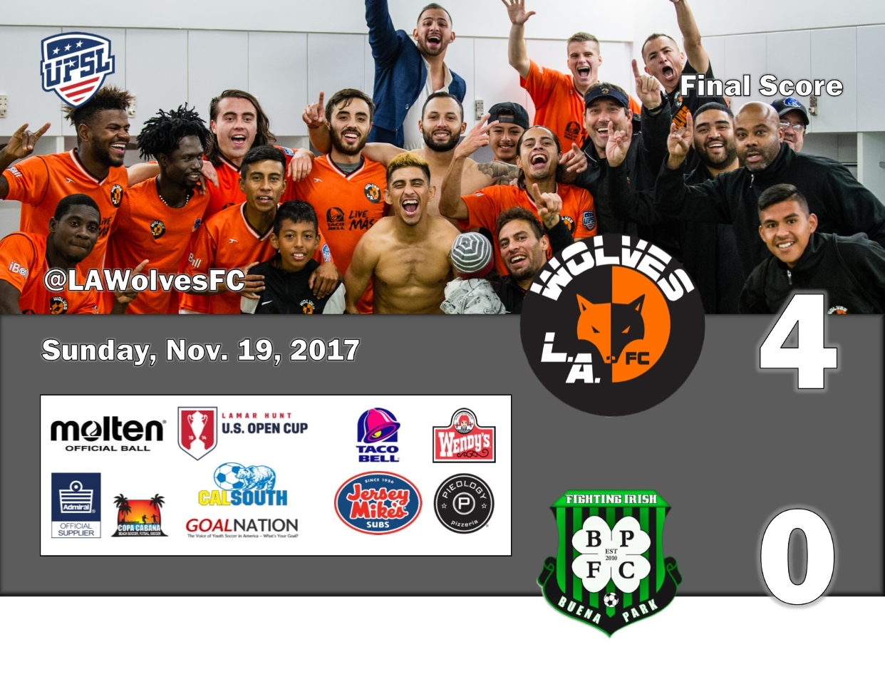L.A. Wolves FC Advances To Third Consecutive Lamar Hunt U.S. Open Cup Tournament With 4-0 Win!
