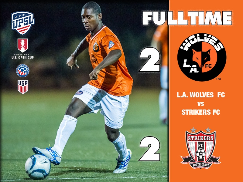In their first match since the Spring 2018 playoffs, L.A. Wolves FC played Strikers FC South Coast to a 2-2 draw on Saturday night in a United Premier Soccer League (UPSL) Pro Premier Division Western Conference Fall Season game at Lake Forest Sports Park.