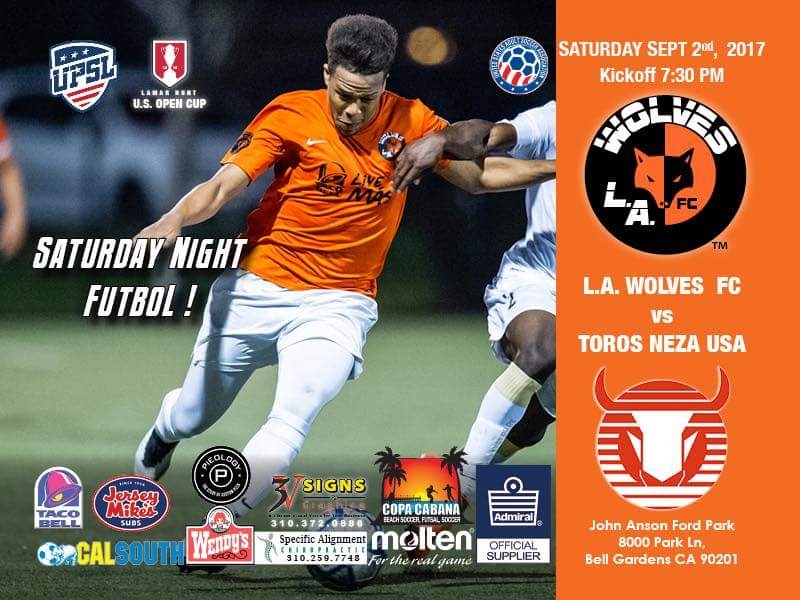 Wolves FC plays Toros Neza USA in a United Premier Soccer League (UPSL) preseason friendly at John Anson Ford Park (8000 Park Ln, Bell Gardens, CA 90201) at 7:30 p.m. on Saturday, Sept. 2.