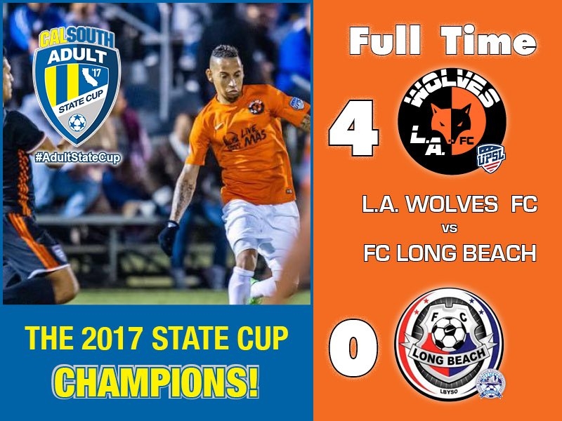 Starting another busy weekend on a high, L.A. Wolves FC defeated FC Long Beach, 4-0, in the CalSouth Adult State Cup Championship Game on Saturday night at Cal State University, Fullerton's Titan Stadium.