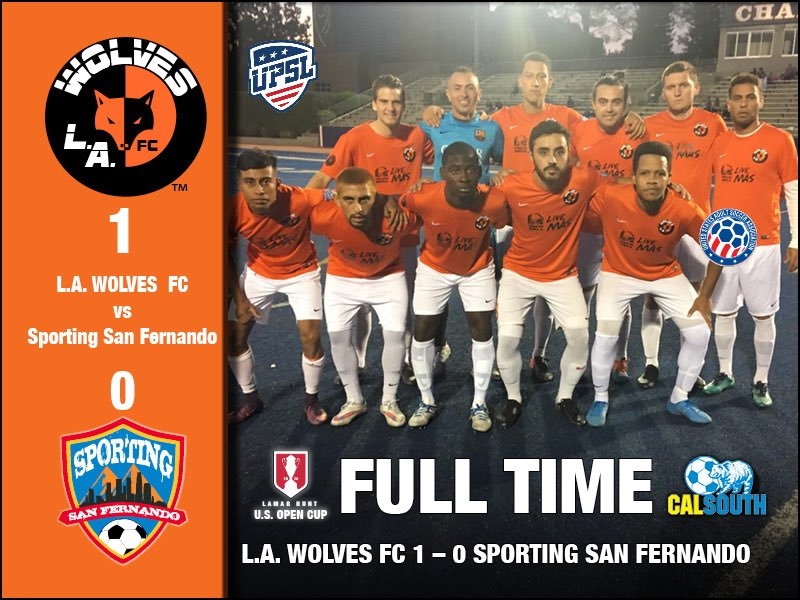 Opening defense of its Spring Season league title, L.A. Wolves FC defeated Sporting San Fernando, 1-0, in the United Premier Soccer League (UPSL) Pro Premier Division Western Conference Fall Season opener on Saturday night at Chaminade High School.