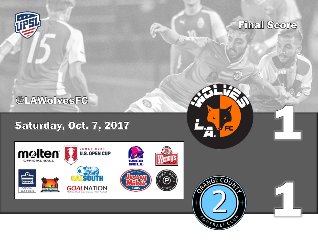 L.A. Wolves FC President Yan Skwara said, "We needed to be more aware. The referee could have been more clear about what he was calling but in the end it falls on us to be ready for anything. OCFC took advantage of the situation. It's a moment that could change the season and now we have to work extra to make sure it doesn't."