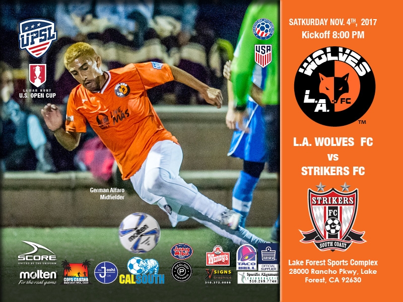 Playing for the first time since the Spring 2018 Championship Playoffs, L.A. Wolves FC plays Strikers FC South Coast in a United Premier Soccer League (UPSL) Pro Premier Division Western Conference game at Lake Forest Sports Park (28000 Rancho Pkwy, Lake Forest, CA 92630) at 8 p.m. on Saturday night.