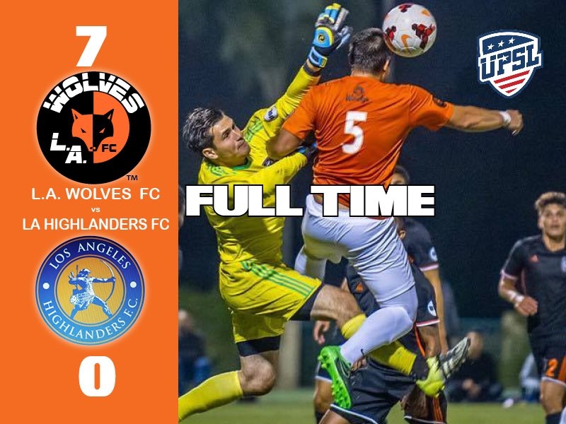 Getting back to league play, L.A. Wolves FC (11-1-0 overall) got a 7-0 victory over L.A. Highlanders FC in a Pro Premier Division Western Conference game on Saturday night at Lake Forest Sports Complex.