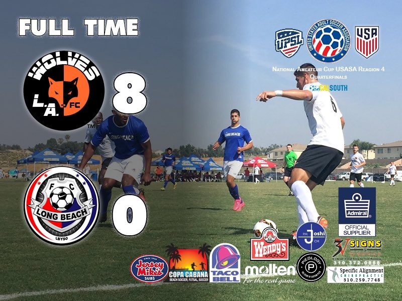 The morning after scoring 13 goals, L.A. Wolves FC recorded an 8-0 victory over FC Long Beach in a USASA Region IV Quarterfinal Round match on Saturday morning at SilverLakes Sports Complex in Norco.