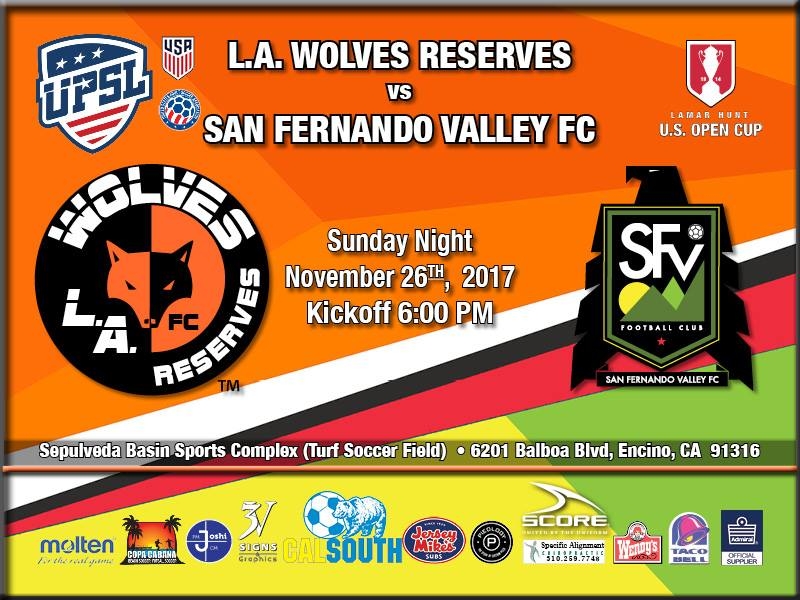 In what will surely be a tough test, L.A. Wolves FC Reserves travel to play San Fernando Valley FC in a United Premier Soccer League (UPSL) Championship Division Western Conference game a Sepulveda Basin Sports Complex (6201 Balboa Blvd., Encino, CA 91316) at 6 p.m. on Sunday night.