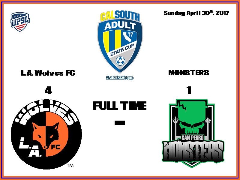 April 30, 2017 -- Los Angeles - L.A. Wolves FC is headed to the semifinals of the CalSouth Adult State Cup 2017.