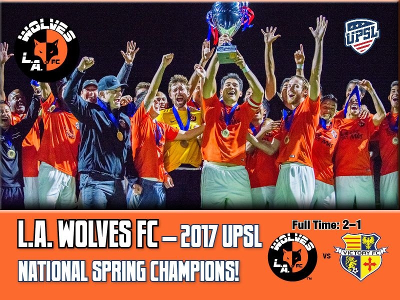 L.A. Wolves FC President Yan Skwara said, "We did it! Winning championships has been a goal of the club since it was founded back in 2014, so it feels really good to stand with this team, and these players, and these coaches, and these sponsors and celebrate this UPSL title. The United Premier Soccer League is growing so fast with many great teams and in so many directions that this trophy represents the start of a new era for the league, and for L.A. Wolves FC. Now we have one more tournament left to win this weekend at the National Amateur Open Cup.