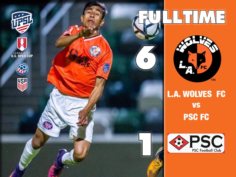 Scoring goals early and often, L.A. Wolves FC defeated PSC Football Club, 6-1, on Saturday night in a United Premier Soccer League (UPSL) Pro Premier Division Western Conference Fall Season game at OC Great Park Championship Stadium.