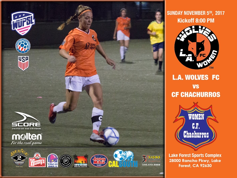 As preparations continue for a full Spring 2018 season, L.A. Wolves FC Women will play CF Cachorros Women in a Women's United Premier Soccer League (WUPSL) exhibition friendly at Lake Forest Sports Park (28000 Rancho Pkwy, Lake Forest, CA 92630) at 8 p.m. on Sunday, Nov. 5.