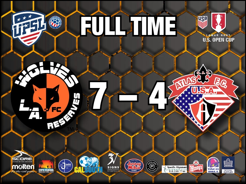In its biggest output this season, L.A. Wolves FC Reserves defeated Atlas FC USA, 7-4, in a United Premier Soccer League (UPSL) Championship Division Western Conference game at Lake Forest Sports Park on Saturday, Oct. 28.