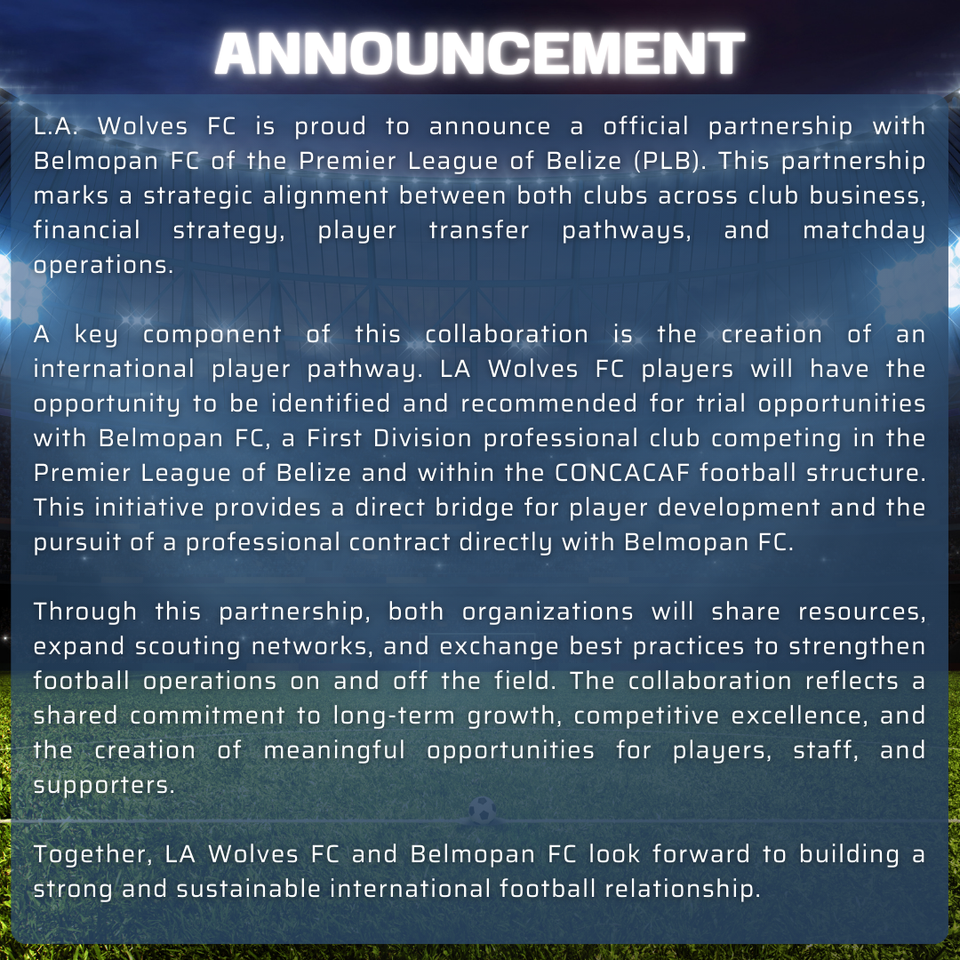 LA Wolves FC is proud to announce our official partnership with Belmopan FC