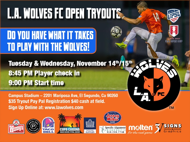 Look forward to seeing you at the L.A. Wolves 2018 tryouts!